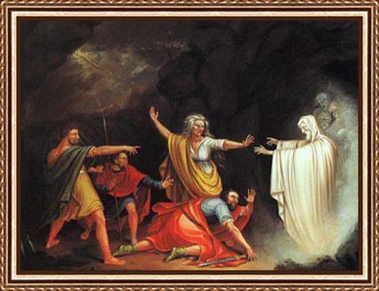 Saul, que provavelmente governou de cerca de 1047 - 1007 aC, expulsou todos os necromantes e magos de Israel após a morte de Samuel, mas, quando ele não recebeu resposta de Deus em seus sonhos, de profetas ou em quaisquer outros métodos de adivinhação sobre a forma como ele deveria lidar com as forças reunidas dos filisteus que ameaçavam as suas fronteiras, ele ironicamente recorreu à procura de uma bruxa (anonimamente e disfarçado) para chamar o fantasma de Samuel. Rabinos judeus daquele tempo ensinavam que os espíritos dos mortos pairavam em torno do corpo por um ano depois que a pessoa morresse, fazendo com que o espírito da pessoa morta particularmente suscetível de ser convocado e interrogado durante este tempo. O fantasma do profeta foi chamado com sucesso, mas, no caso, ele não ofereceu conselhos úteis sobre os filisteus, embora ele tivesse previsto a queda de Saul como rei. Saul e seus filhos caíram em batalha no dia seguinte em Gilboa.